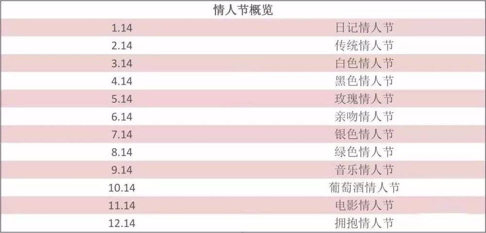 据悉,90年代的王府饭店还推出了高价为300元的情人节晚会,效果不错,饭店的预定电话几乎被打爆。一年有多少个情人节?百度百科的答案是14个,这或许有悖常理,但事实的确如此。凡事牵扯到爱情,就有无数个话题来网罗天下有情人,正因为情人节泛滥成灾,大众的情感疲劳也日渐生成。