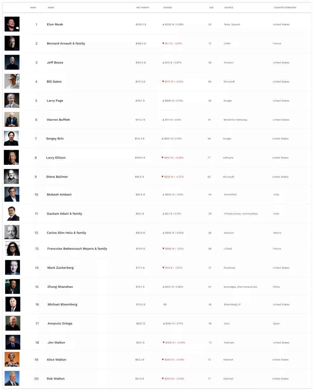 布斯实时富豪榜(2月17日)