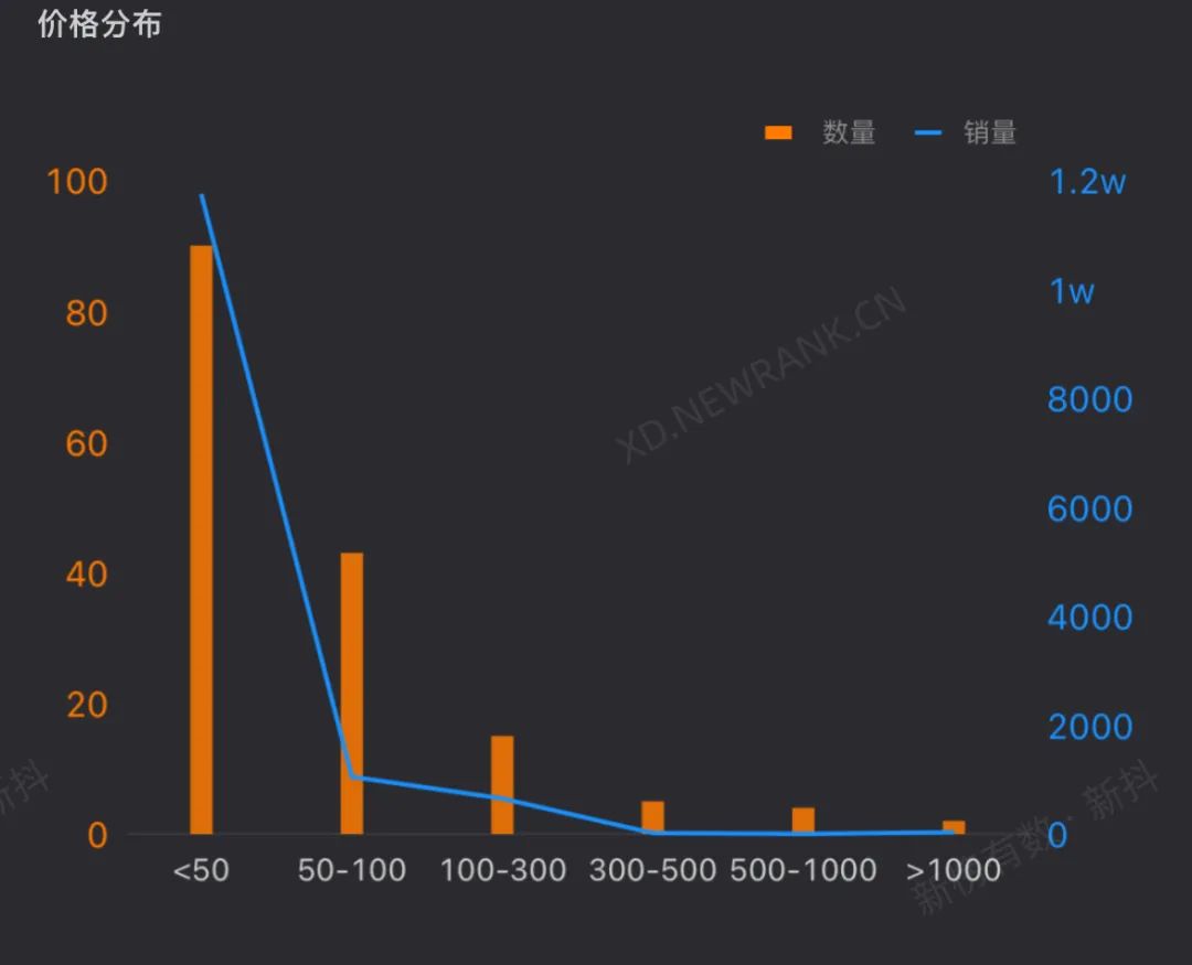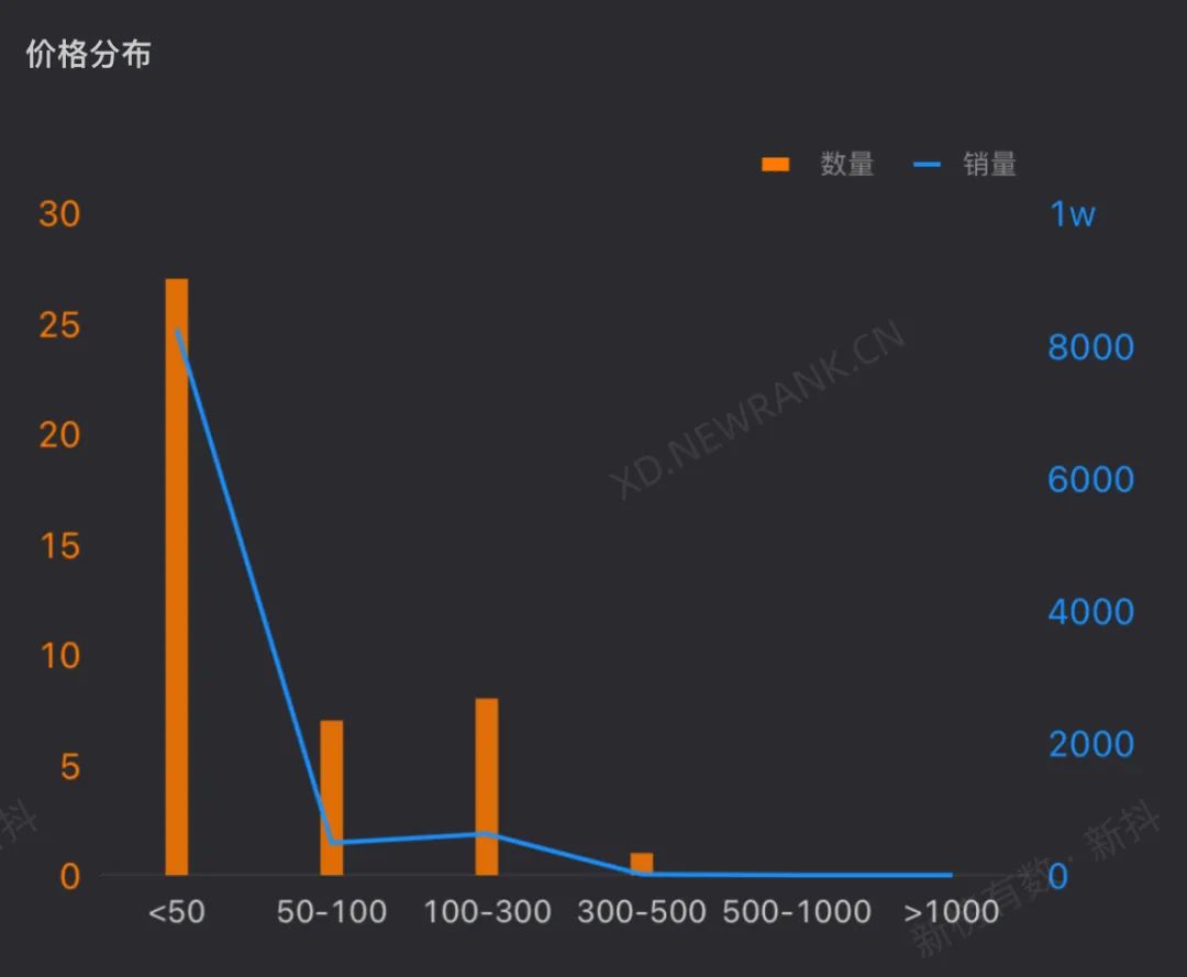 截至2月17日,东方甄选共计售出1.5万件单价小于50元的商品;3200余件单价50至100元区间的商品;1500余件单价100至300元区间的商品;而价格超过300元的商品销量几乎可以忽略不计。