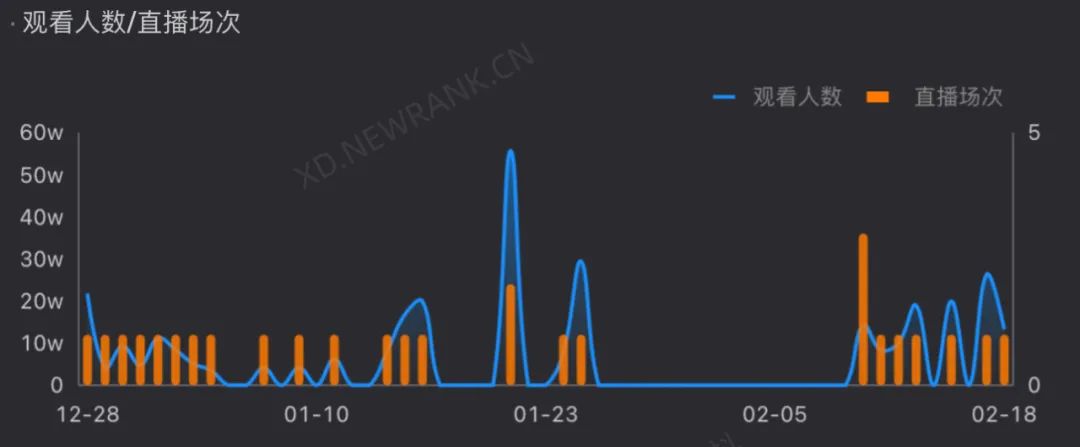 从观看人次表格可以看出,东方甄选开播后,观看人次一度走低;直至1月21日迎来最高55.7万人次;但春节假期过后至今,直播间观看人数平均20余万人次。