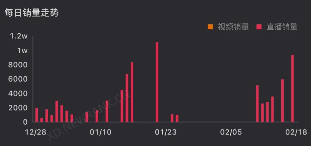 而自1月12日起至1月25日春节放假前最后一场直播,东方甄选直播带货销量迎来了第一波高峰。这段时间累计带货商品145件;累计销售额208.02万元;累计销量3.28万件。