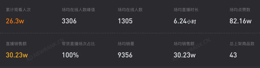 2月17日,东方甄选直播间累计观看人次26.3万;场均在线人数峰值3306;场均在线人数1306。