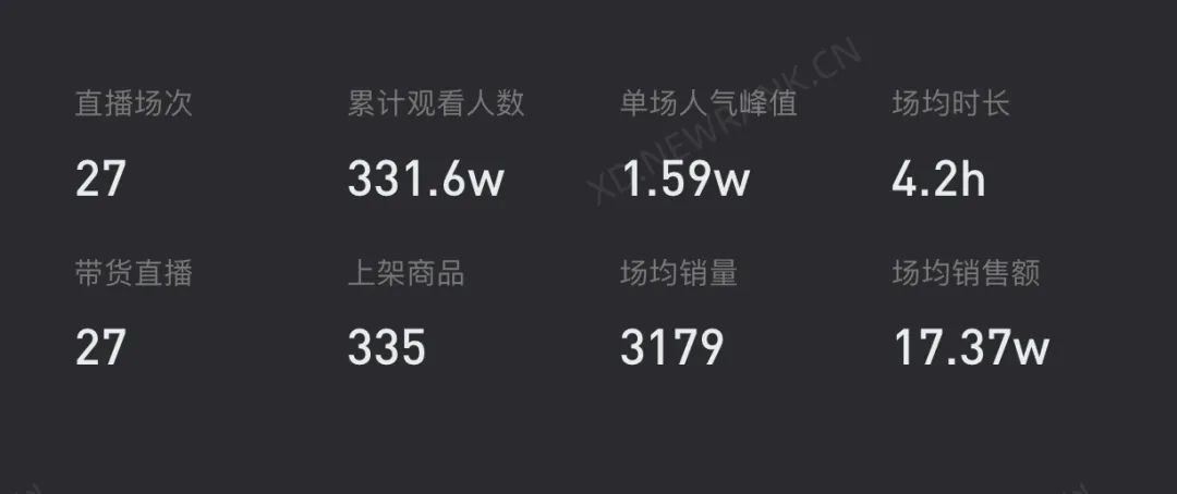 开播至今,东方甄选直播27场,累计观看人次331.6万,单场人气峰值1.59万,场均销售额17.37万元。
