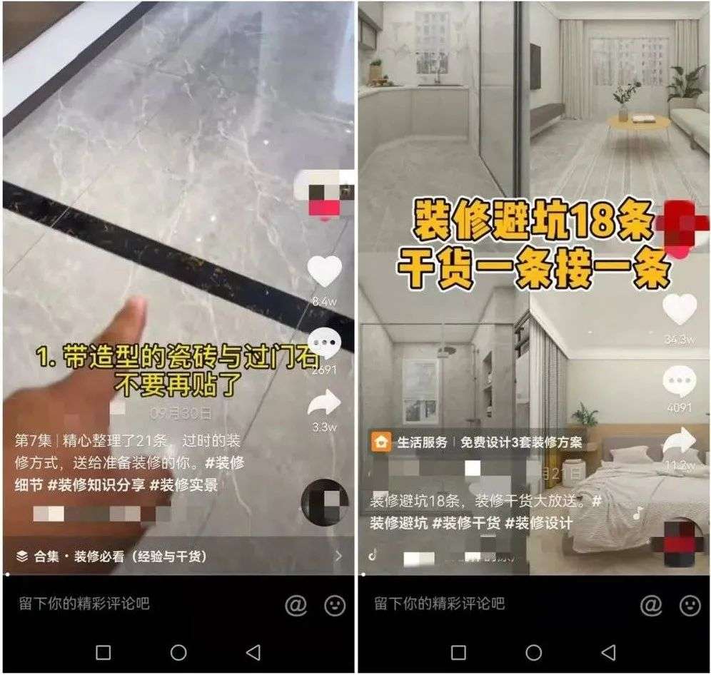 再后来,你发现这些搞装修短视频没几个是站在业主立场上考虑的,或多或少夹带私货引导受众的价值取向。
