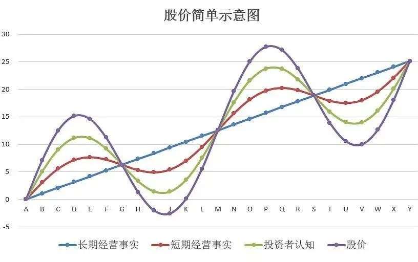 股价的周期波动,可以看成是这几个主要因素周期波动的合成;如果对高中物理还有印象的话,我们应该能记得,任何波动都可以分解成多个波动,理解起来就比较形象了。企业长期经营事实,是由一系列短期是经营事实构成的,短期经营事实的变化比较多,投资者认知的变化更加敏感,在叠加市场流动性的变化,共同构成股价的变化。