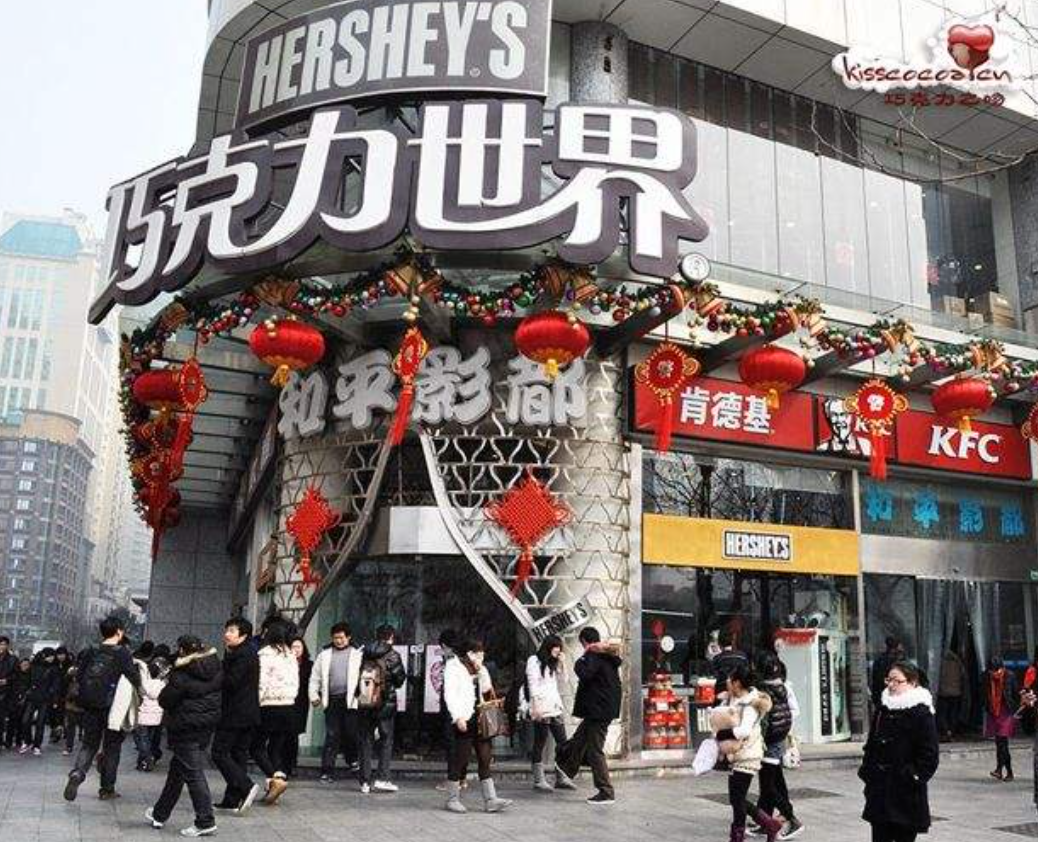 作为一家曾经在中国糖巧市场饱有盛名的巧克力品牌,好时顶峰时期仅其在南京路上的品牌专营店就能贡献亿元销售额,最高光时,其以上海和平影都为依托的体验店——好时大世界,一度被巧克力爱好者视作是朝圣之都、地标建筑。