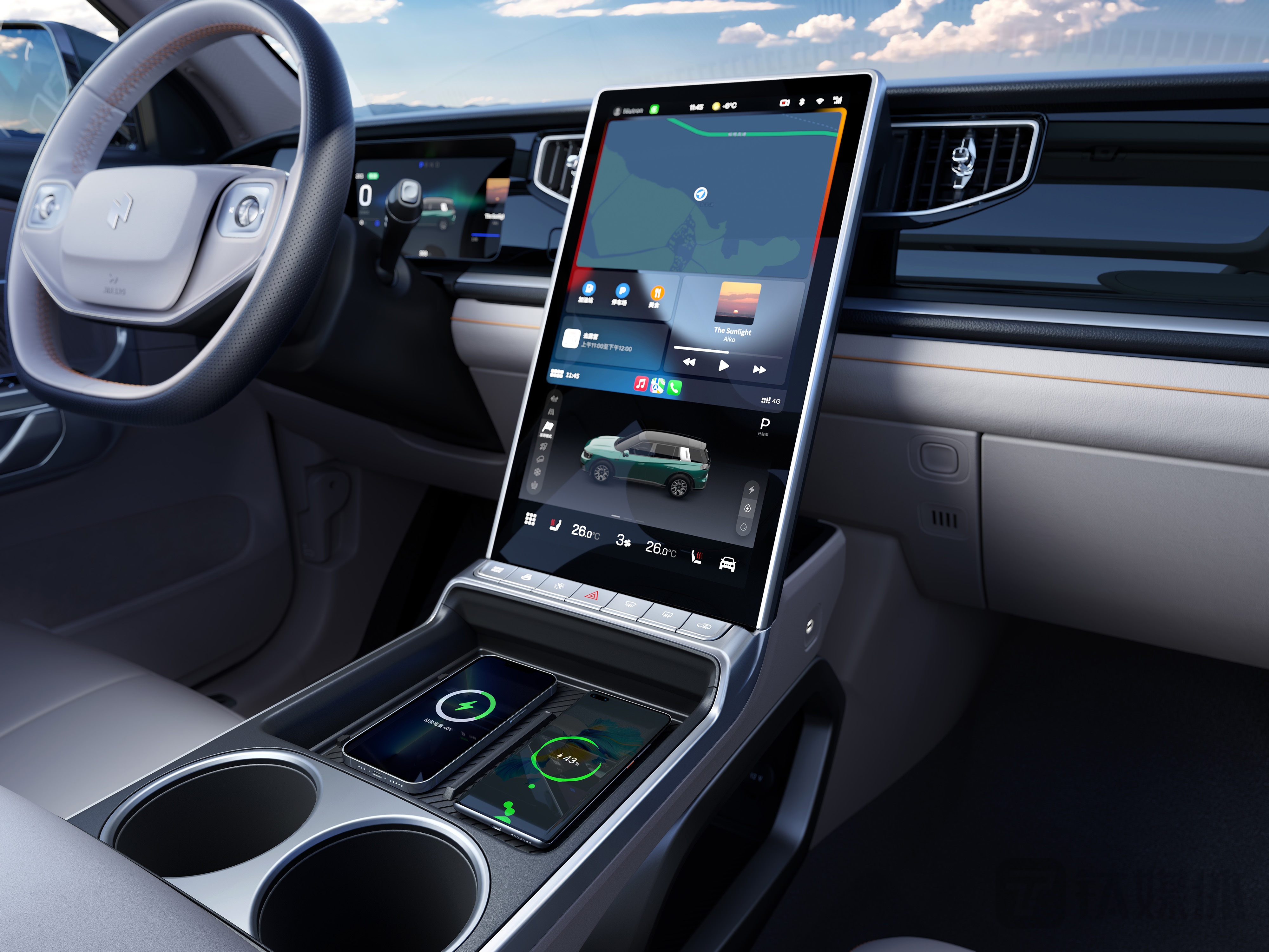理想ONE的一些用户始终在抱怨Carplay功能的缺失,这背后是理想对于自家车机交互体验的绝对自信。自游家NV这一次把Carplay功能提供给了用户,用户的手机可以自动连接这一系统后将符合其个人使用习惯的导航、音频、日程、通话、信息等APP根据驾驶场景进行优化,将手机功能自然延续到车机系统。用户还能通过语音或方向盘按键唤起语音助手Siri,实现对车机App和座舱功能的语音控制。