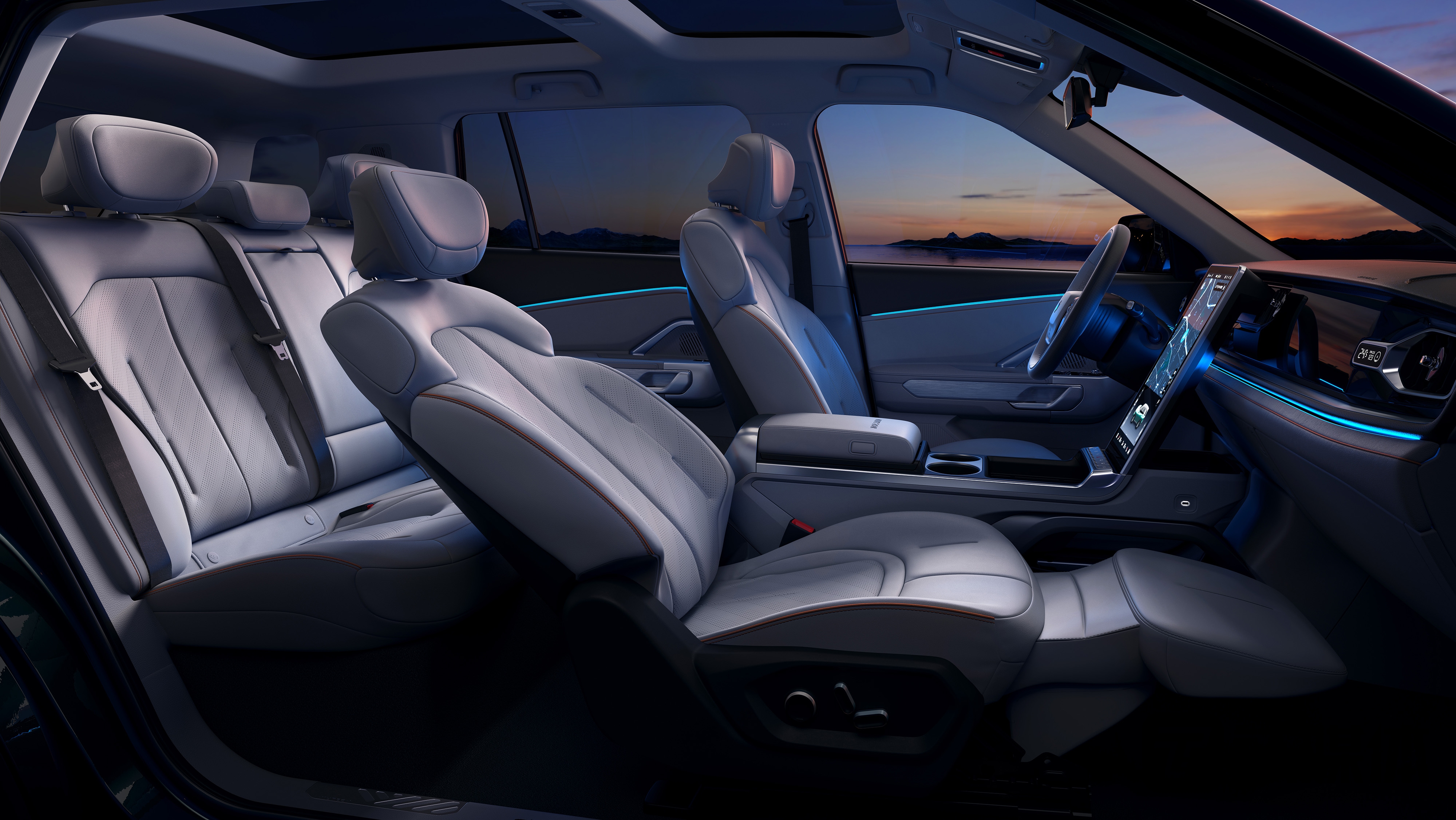 副驾驶的乘客在躺平之后便会发现头顶面积达到1.71平方米的全景天幕,它采用了整片双层镀银微米级LOW-E隔热玻璃,隔绝99.9%的紫外线,热阻隔率超过83%,有效透光率达5%。这块全景天幕占到了车顶总面积的75%,即便在夜晚也能享受星空视野带来的沉浸体验。除了这块天幕之外,自游家NV全车还配置了双层夹胶静音玻璃,和普通玻璃比,将车内噪音降低12%,一些特殊音频(如高音风噪)可降低50%。此外,通过15只扬声器打造的多维声音响系统(Immersive Sound),可让用户在座舱内享受沉浸式的7.1声道音乐。