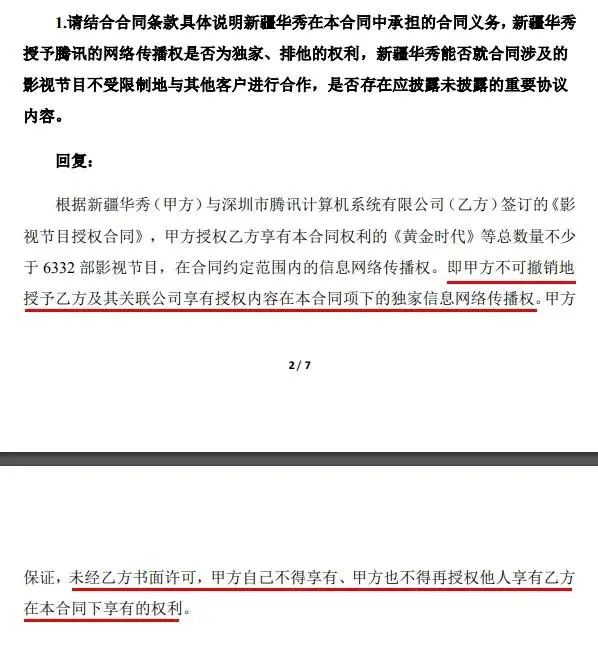 同时在捷成股份回复深交所关注函的公告中,则确认了与腾讯的18亿影视版权合作中,授予腾讯的网络传播权是独家、排他的权利,同时腾讯也独家获得了上述版权的分销权。