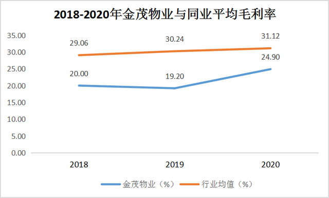 造成这一现象的原因是主要营收来源——物业管理服务的毛利率偏低。2020年,金茂物业服务基础物管部分毛利率仅为17.8%,而该部分营收占比达60.1%。