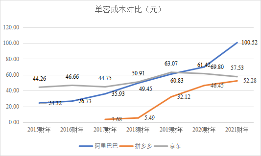 阿里、拼多多、京东单客成本分析 资料来源@阿里&拼多多&京东财报、穆胜咨询