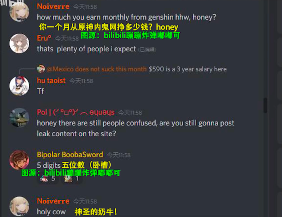 有意思的是,一位《原神》玩家“蹦蹦炸弹嘟嘟可”曾发布过一张海外内鬼网站站长的聊天记录,在这张聊天记录中,这位网站站长直言“一个月可以收获五位数”,但没有明说货币单位。