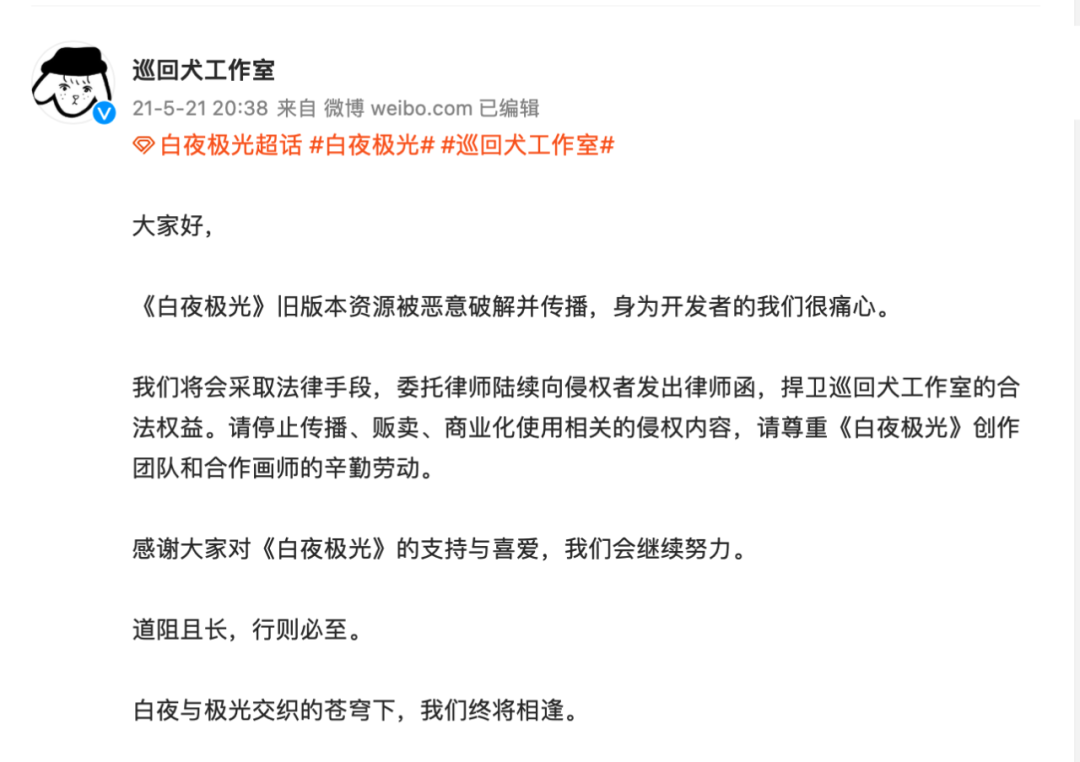 《白夜极光》在上线之前曾被某位博主爆料过游戏内旧版本素材,不过由于博主并非泄漏事件的源头,该事件最后也只能不了了之。