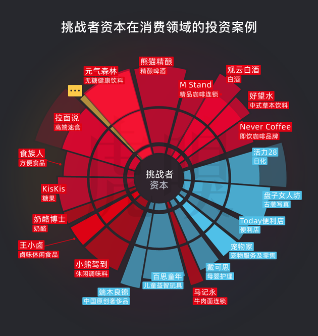 雄厚的创始人资金不仅为元气森林带来启动资金,后续也在支撑其产品的快速迭代,而元气森林席卷快消行业的同时,挑战者资本在背后不断为其丰富新的消费场景,并试图将元气森林的爆款方法论复制到其他赛道上。目前,元气森林和挑战者创投“双核”联动,正一明一暗地打造一个庞大的消费品帝国。