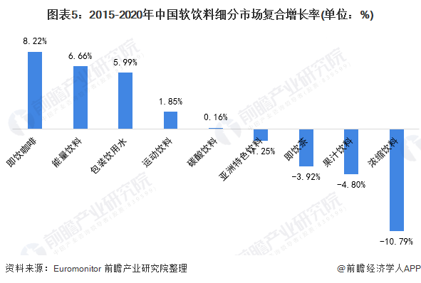 据欧睿预测,2021年中国即饮咖啡的市场份额将达到149亿元。从市场增速来看,即饮咖啡无疑是近年来最具有潜力的软饮细分品类,近五年复合增长率高达8.22%。