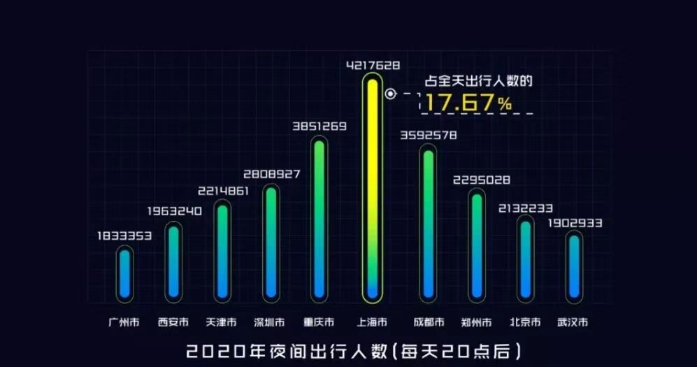 而对于晚间市集来说,城市人口在夜间活跃度则是重要的客流量保障。第一财经·新一线城市研究所发布的数据亦显示,上海市民偏爱夜间出行,每天20时后的出行人数在全国城市中排名第一。