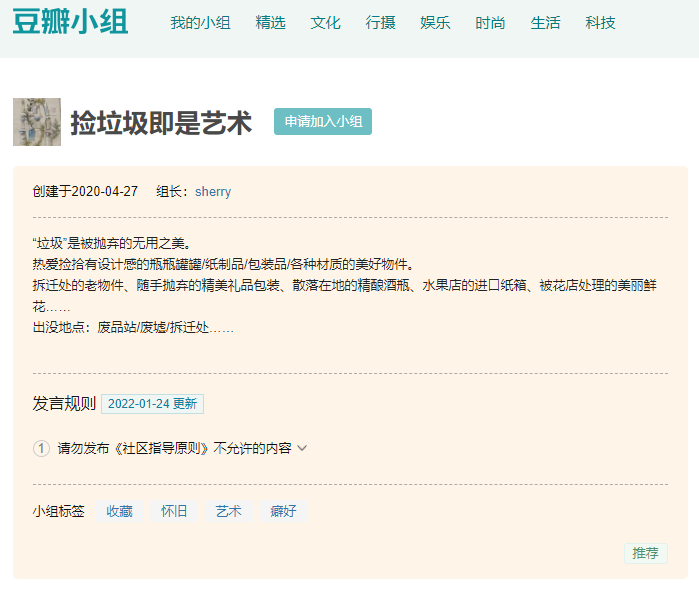 在小组里,豆友们也会表达捡破烂过程中,对物品生命的思考。还有人从“废品”中获得治愈: