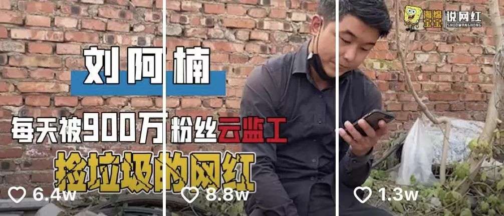 “抖音废品回收头部大V”刘阿楠拥有粉丝1065万,作为一个资深的“废”二代,他凭借有趣的内容让很多粉丝云监督去捡垃圾。