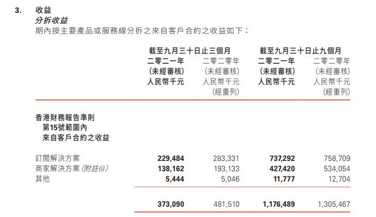 从财报中可以看出,有赞的收益主要来与三方面:订阅解决方案、商家解决方案以及其他。