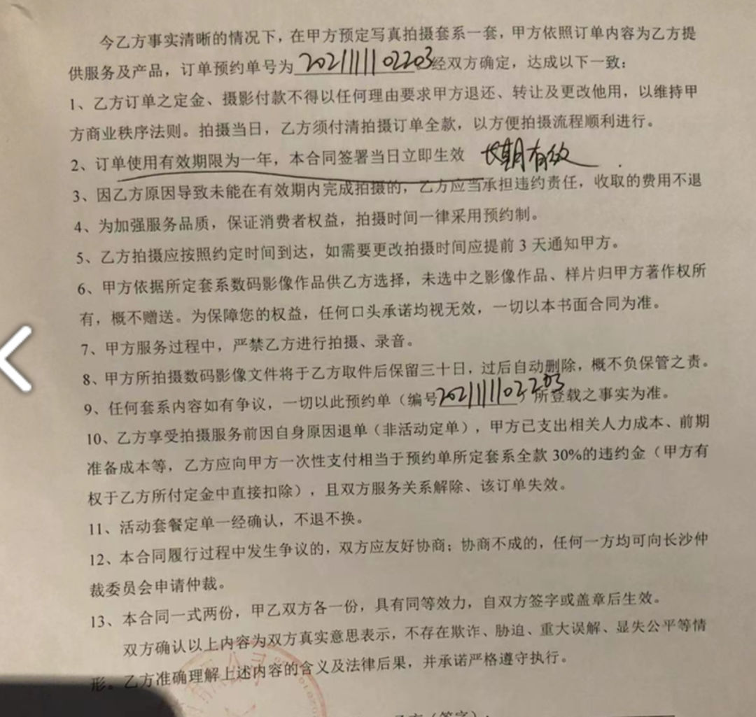 而根据消费者在黑猫投诉平台晒出的预约合同,律师佳琳告诉刺猬公社:合同中存在“不得以任何理由要求甲方退还”等无效格式条款、限制消费者权利、违约金过高等情形。