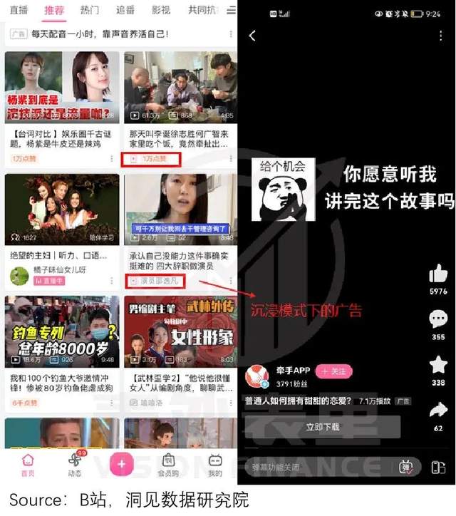 2021Q3、2021Q4电话会议里,反复提及的短视频Story Mode模式,其背后潜藏着可比肩抖快的沉浸式广告“吸金能力”。这让投资人振奋不已,认为B站收入“腾飞”指日可待。