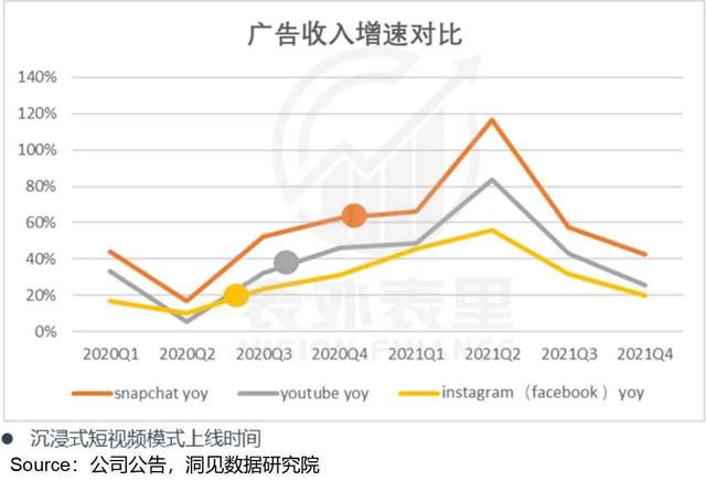 不过,反常的是,在2021Q2行业景气度反弹季,YouTube、Snapchat和行业高恢复弹性保持一致,Ins却表现平平。