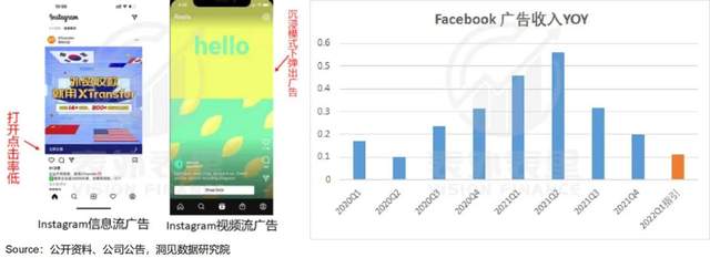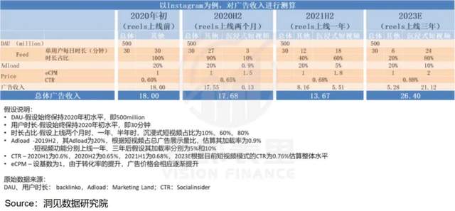 备注:Reels上线两个月时,短视频争夺流量效果会比较弱,再加上新模式转化率较好,价格会有小幅提升,整体广告收入只小幅下降。