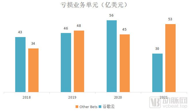 Other Bets和谷歌云过去4年的亏损情况,数据源于公司年报