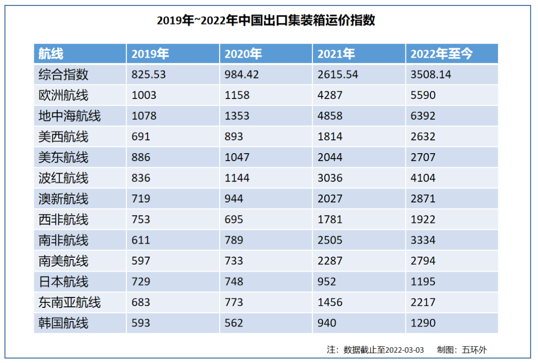 2019~2022海运运价变化状况 数据来源:中华人民共和国交通运输部制表