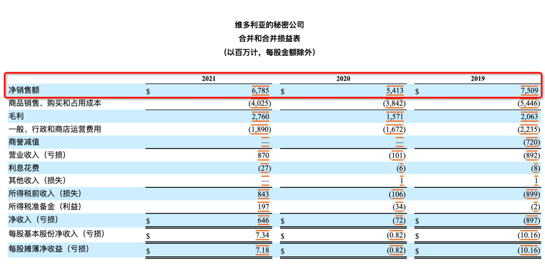 维秘2021年销售数据及往年对比