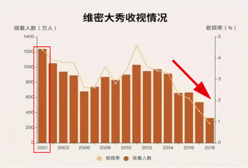 维秘大秀的收视率,一贯可被视作维秘经营的晴雨表,巅峰时期曾创造1030万的观看人数。