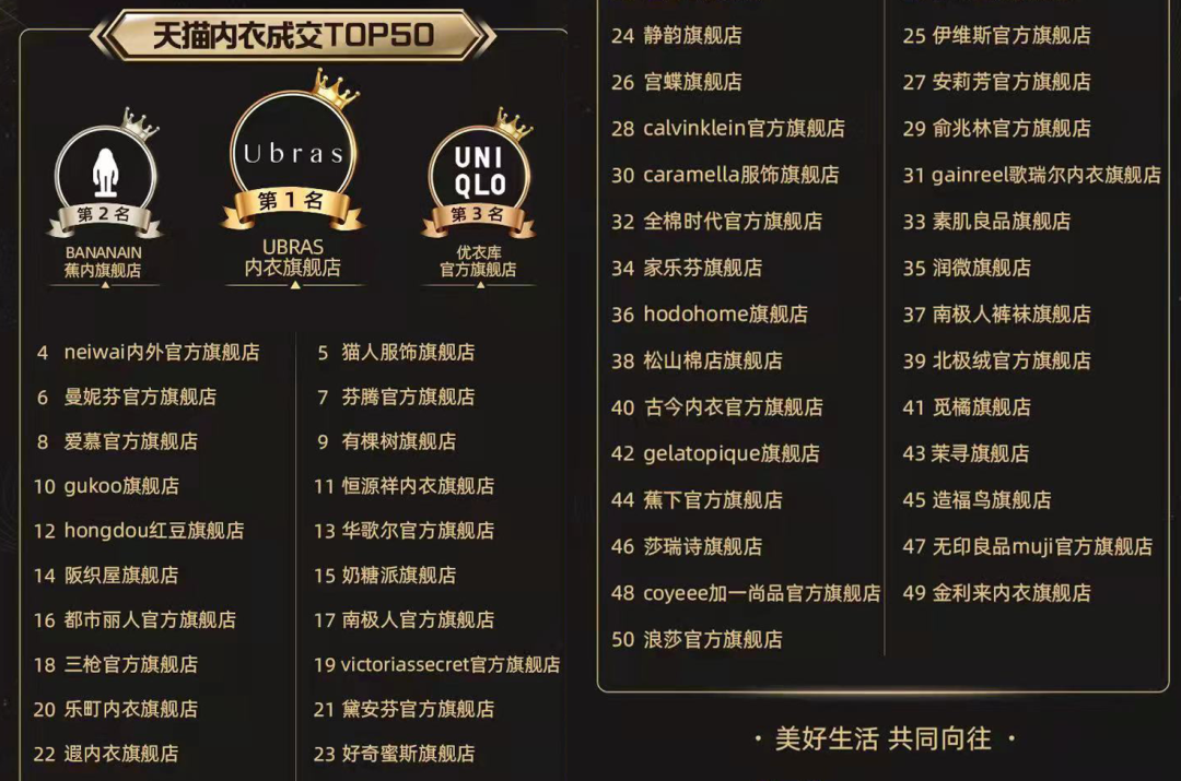 2021年天猫双11内衣成交榜单