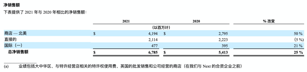 维秘北美门店和国际市场的收入情况