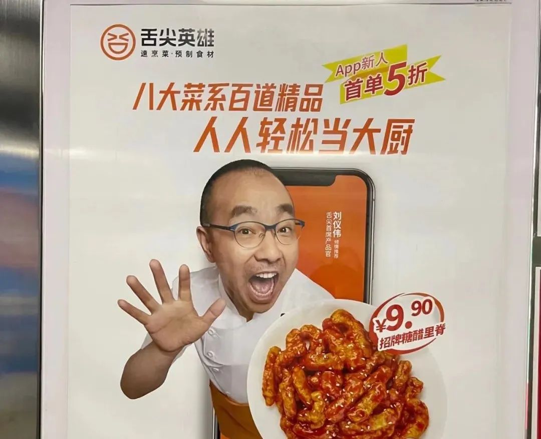 同时,这个赛道的创业者越来越多。近期,陆正耀预制菜的新项目“舌尖英雄”(曾用名:舌尖工坊)再次出现在市场的视线中,并加大了营销力度。连线Insight发现在抖音、电梯间都能看到舌尖英雄APP的宣传海报。