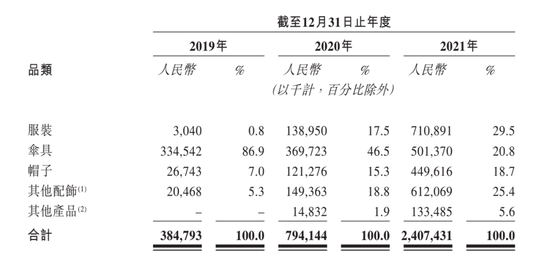 蕉下也在招股书中强调了其极致单品的运营能力,其单品代表胶囊伞2021年的销量超过100万,累计销售额达到1.18亿元。