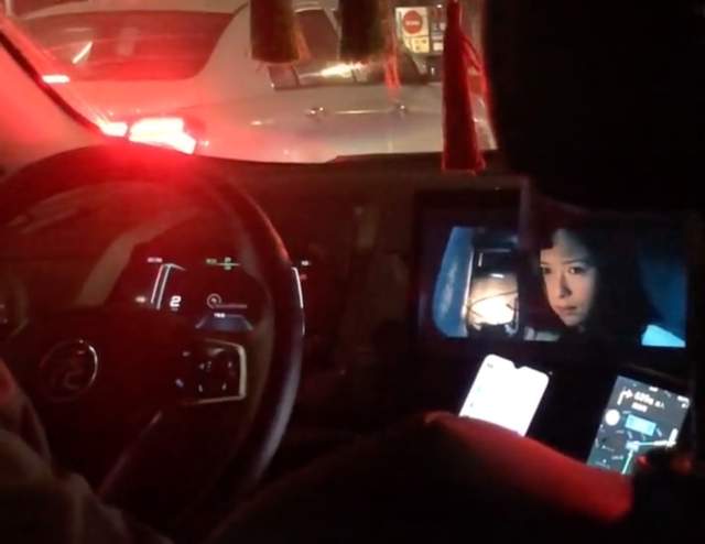 来源 / 抖音 网约车司机边开车边放电影