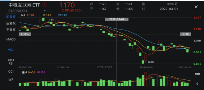 在二级市场,中概股的表现更是不容乐观。今年3月,中概股遭受了历史性的下跌冲击。中概互联EFT从3月1日的1.7元/股,跌至最低3月15日的0.865元/股,跌幅49.11%。