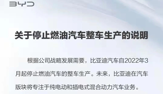 比亚迪燃油车在3月份已经停产,而整个3月份比亚迪未进行任何声明,也没有相关文件流出。直到4月3日才公布,这时3月各项数据都已经公布,媒体一定会想办法挖掘时间背后的原因,有了这些数据,对比亚迪自身的优势是又一次彰显, 同时当前大背景是国际油价上涨,这个时候宣布,又会成功收割一大波的关注度。