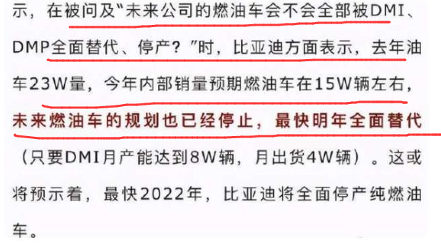 在关注比亚迪宣布停产燃油车消息的同时,深入的了解了一下比亚迪情况,发现了几个端倪:首先,企业经营不是游戏,比亚迪显然有备而来。去年6月曾有一份“内部纪要”就现身网络,一度引发网上热议“比亚迪将停产燃油”,当时比亚迪很快辟谣。但是不到一年的时间就发公告宣布了,从现在结果来看,比亚迪去年的决心就已经非常坚决了。