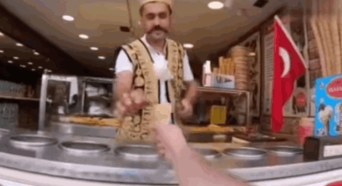 在这之外,抖音上最火的土耳其元素,应该是土耳其冰淇淋,花样百出套路不断的杂耍式卖冰淇淋,让顾客们一边上火一边又乐在其中。