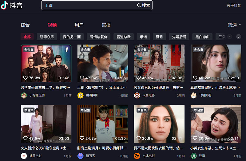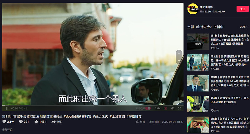 在当时,可能鲜有人想到,抖音还会和土耳其有什么样的额外关联。2020年,大批影视解说类账号在抖音崛起,虽然拆解国产剧及英美日韩剧是主流,但也有一部分剪刀手注意到了相对小众的土耳其剧。