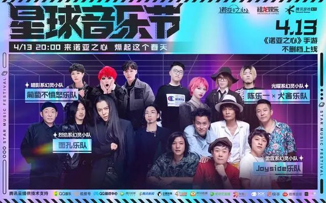 相比于两位题材前辈,《诺亚之心》在音乐内容的表现上更加激进,上线首日推动星球音乐节,邀请了多支知名摇滚乐队参加。同时,在音乐节上将各支乐队的特色与游戏卖点进行融合,而多支乐队联手现场串烧《诺亚之心》首发推广曲,让观众观看音乐节的同时感受到游戏内容和特色,为产品树立起高品质的品牌感。