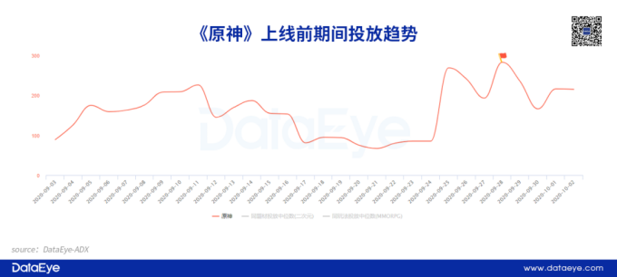 ①注重在预热阶段的营销推广:从投放数据来看,《诺亚之心》无论在效果广告投放还是达人视频营销层面,都比较注重在预热阶段的推广。项目组在整体推广预算不充足的情况下,利用预热阶段的推广,强调二次元开放世界产品标签,借势获得更多的关注度。