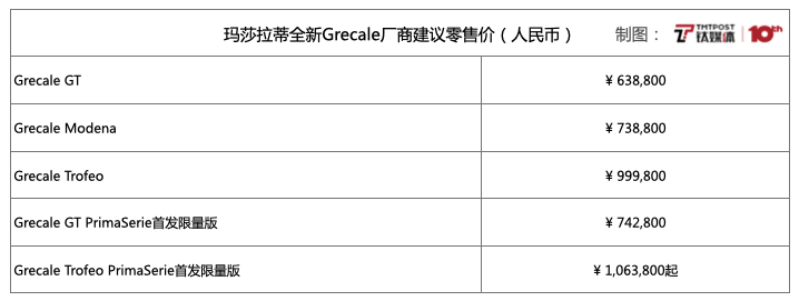 钛媒体APP4月21日消息,玛莎拉蒂全新Grecale今日上市。新车共五个车型,入门版Grecale GT售价63.38万元,最高配Grecale trofeo primaSerie的起售价为106.38万元。