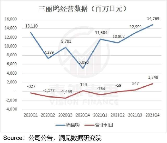 新增长曲线释放下,2020Q4开始三丽鸥的销售额反转,同时利润也在2021Q3扭亏为盈。