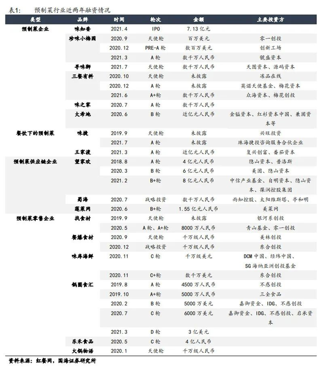 在行业快速扩张中,嗅觉敏锐的资本纷纷入局。其中市场参与者有IDG、高瓴这样的知名风投机构,有美团、盒马鲜生这样的外送平台,海底捞下属的餐饮食材B2B公司蜀海、王家渡这样的餐饮集团,还有传统商超永辉超市旗下食材解决方案服务商彩食鲜。