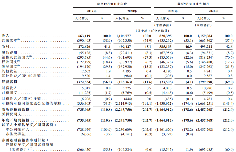 招股书显示,近几年来Keep的营收数据一直在稳步增长,2019年至2021年前三个季度,Keep分别实现收入6.63亿元、11.07亿元、11.59亿元,不过,平台亏损却在扩大,Keep的年亏损从2019年的7.35亿元增加到了2020年的22.44亿元,2021年前三个季度,Keep亏损更是达到24.58亿元。