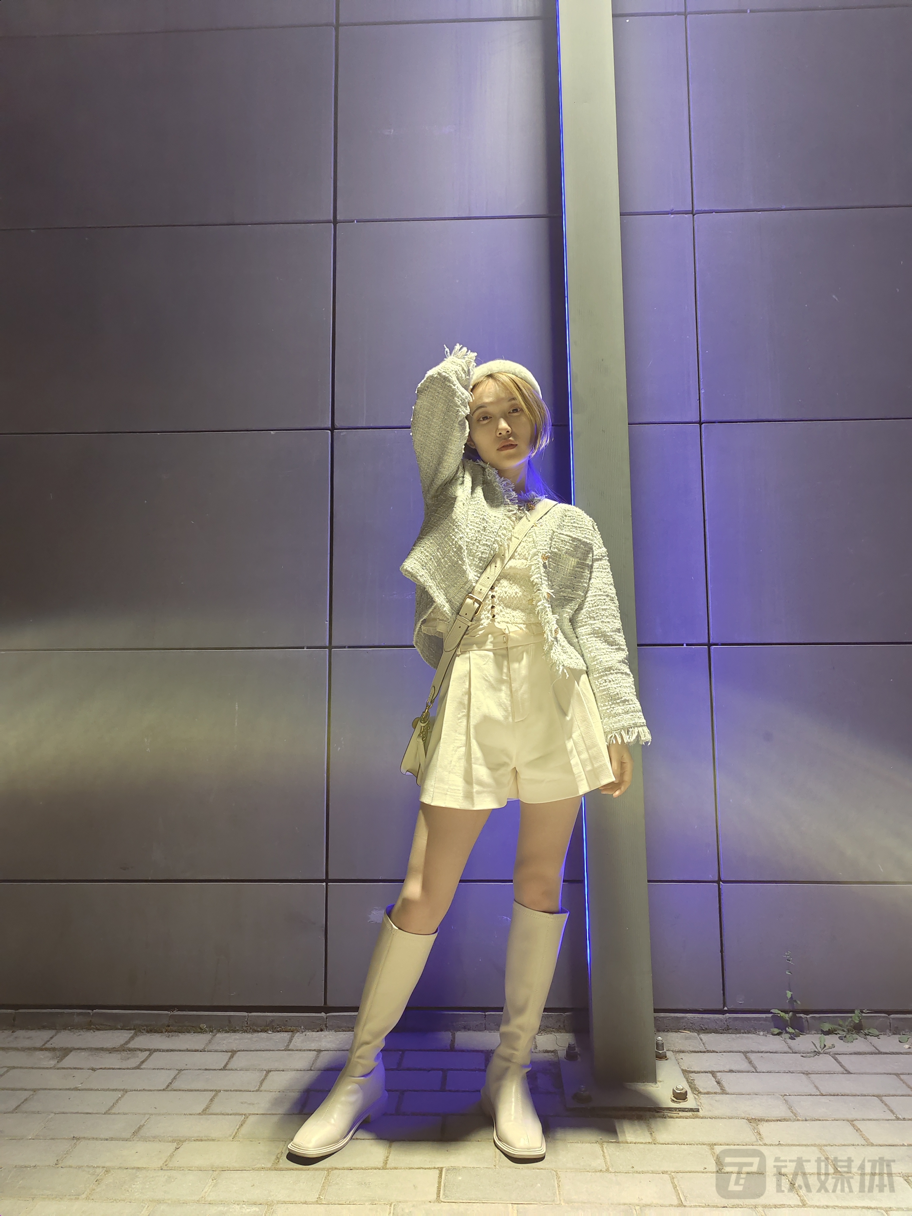 这是深夜在路边借助一个路灯的光线,采用风格化摄影,画面整体呈现出一种未来科技感的感觉。实际上,vivo X80 Pro中有非常多的风格化小组件可以使用,通过不同组合和发挥,可以获得有创意的拍摄效果。