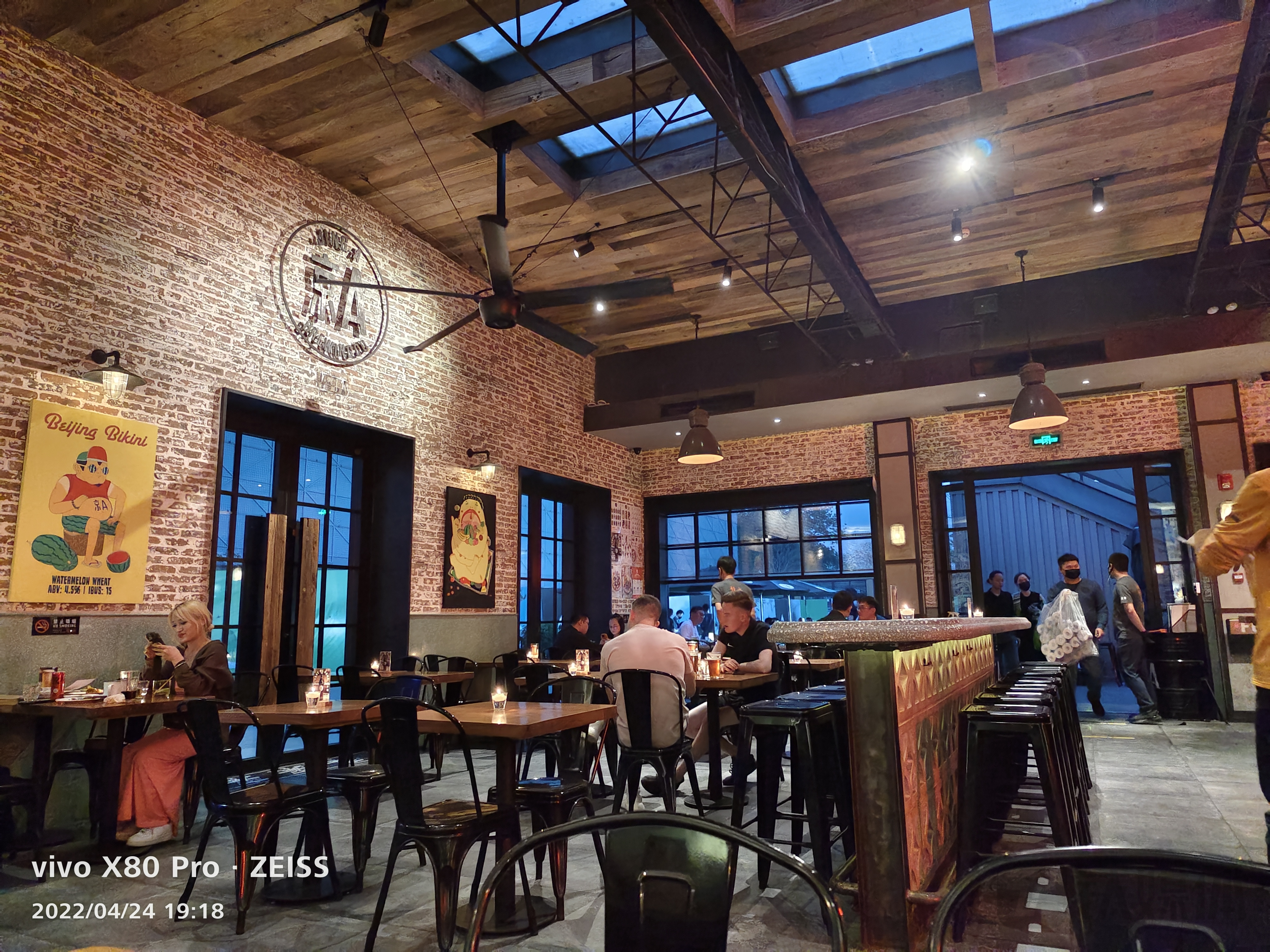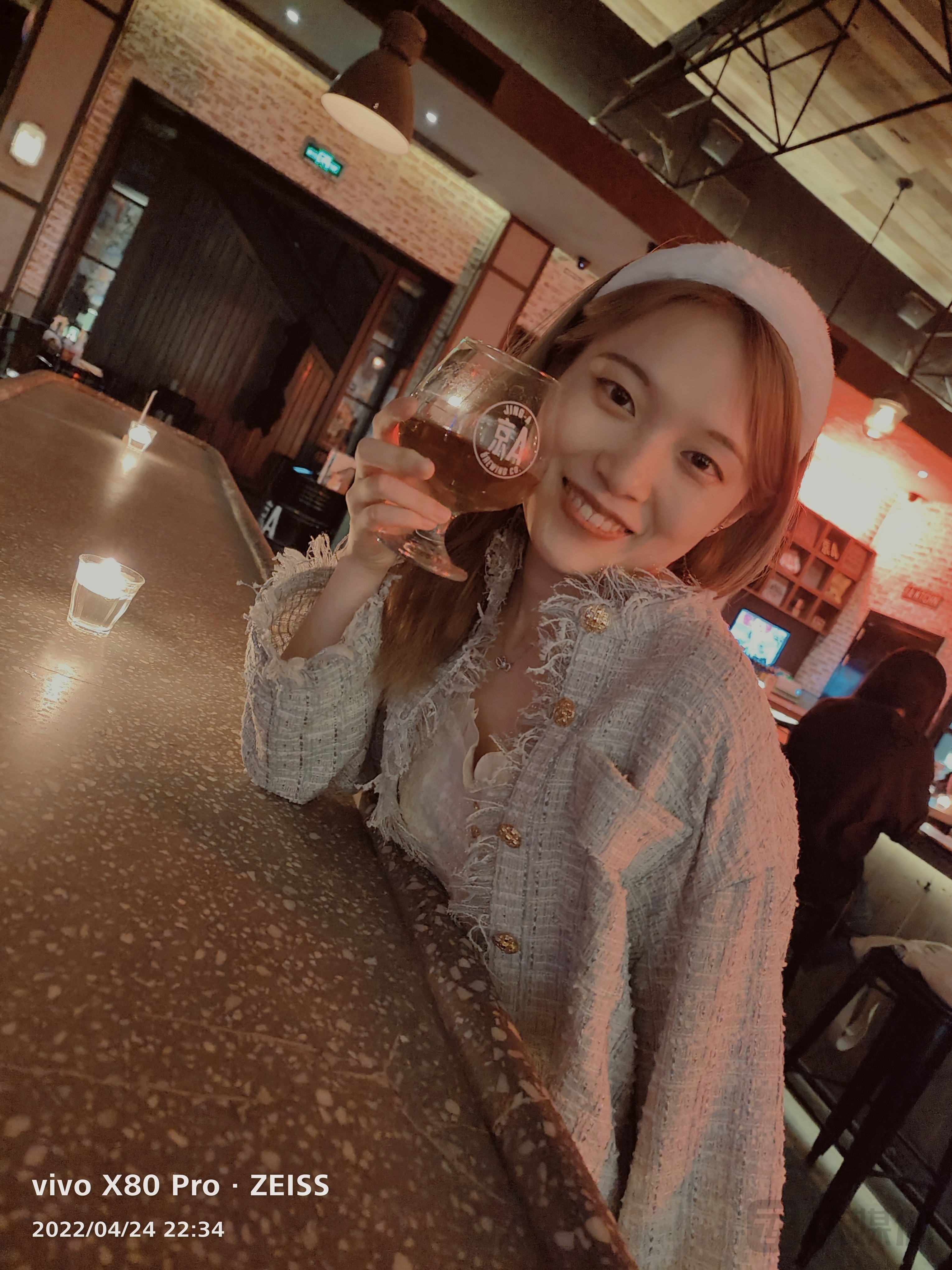 接下来是酒吧环境的拍摄,晚上7点,北京天色已经比较暗了,但在vivo X80 Pro的拍摄下,光影表现的非常到位,可以注意到画面中的所有点光源,灯泡,桌上的蜡烛,都没有光线的溢出,画面给人呈现出非常温暖舒服的调性,而实际上当时的氛围也是这样的。
