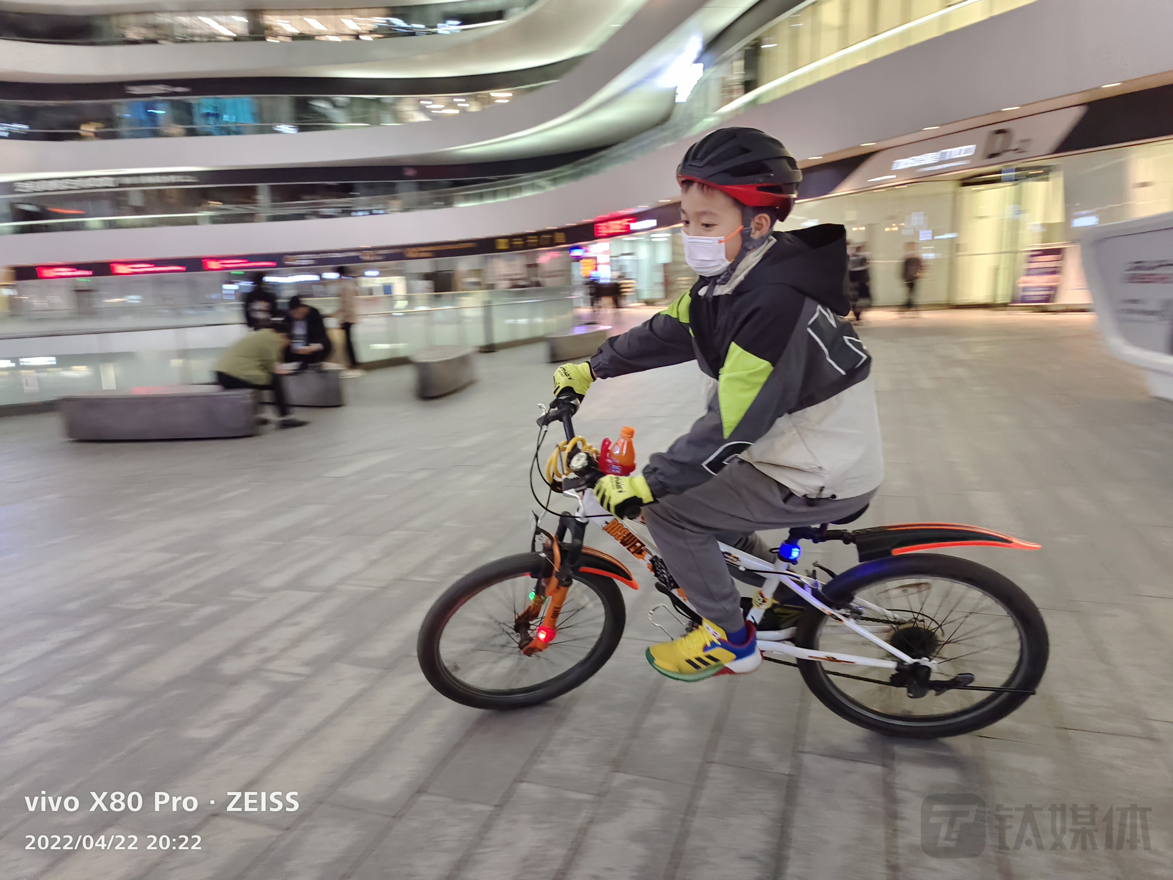 vivo X80 Pro拍摄选项中有一个“运动抓拍”功能,可以稳定的抓拍运动中的人物。这里以一个小朋友骑车为例,绕着拍摄者圆周骑行,通过“运动抓拍”功能,可以轻松的将运动中人物拍摄的清晰,而背景保持运动动感,这样的拍摄组合应用,让画面充满了动感趣味。